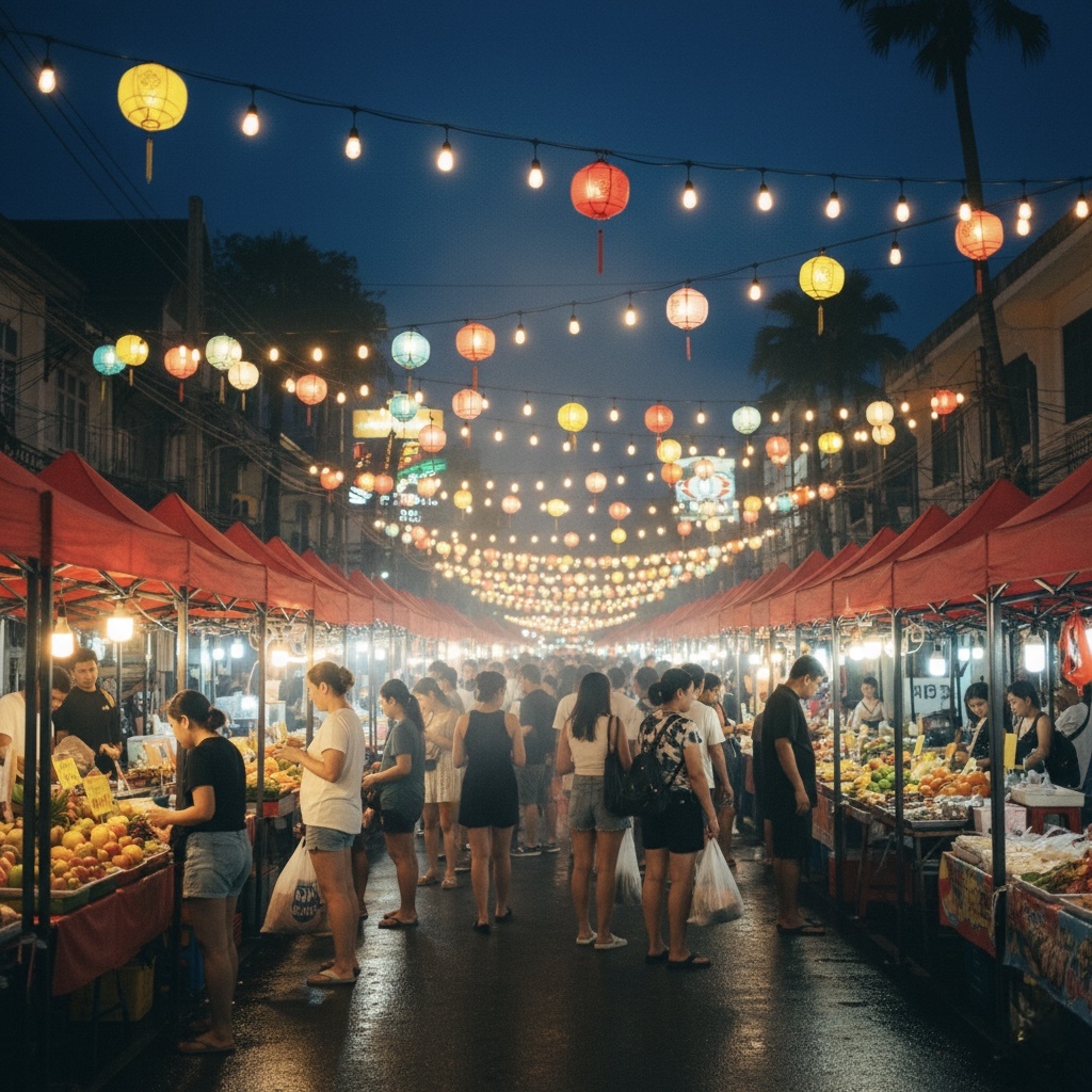 На улице было тихо, тепло, и я подумал: «Почему бы не свернуть на ту улочку с яркими фонариками?» Так началось моё путешествие в тайскую версию "Алисы в Стране чудес", только вместо кролика — запах жареных кальмаров и караоке на тайском. Первая половина рынка была обычной: Но чем дальше я шёл, тем страннее всё становилось.