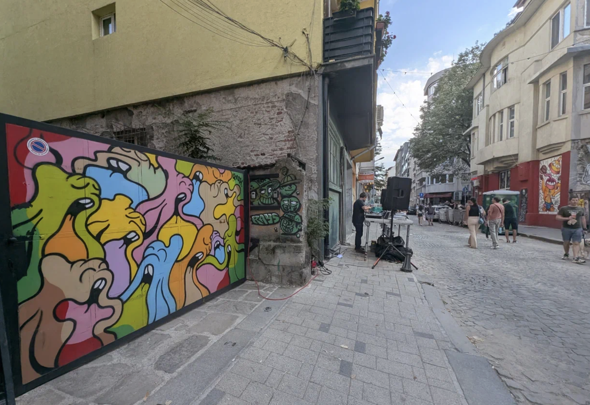 Я приехала в Софию ближе к вечеру, разместилась в гостинице и пошла гулять по городу. Было воскресенье, теплый сентябрьский вечер. На улице было много народа. Откуда-то слышалось музыка. Я пошла на звуки. Оказалось, что на соседней улице идет какой-то праздник. Кроме музыки, на улице выставлены какие-то странные манекены: Небольшие бутики выставили товары, люди гуляли с детьми и собаками: Собачка оказалась очень милой и дала себя сфотографировать: Погода была замечательная, 22 градуса, тепло. Солнце уже начало постепенно опускаться к горизонту: Наверное, это была улица каких-то креативных людей, потому что товары здесь были из раздела "ручная работа" : Покупать мне ничего не хотелось, а вот посмотреть было интересно: Тут даже валенки есть! В смысле валяная обувь: Разные масла, особенно розовое: Яркие разноцветные сумки-шопперы: Футболки с принтом: В конце улицы я даже увидела вот этот зеленый раритет! Наша Лада! До сих пор жива! Я зашла в книжную лавку: Я перешла на другую ули