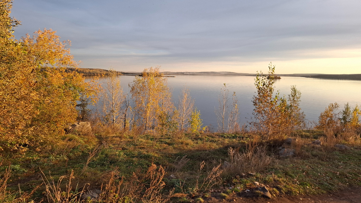 Сегодня с утра трудились в огороде, убирали пожухлые цветы после мороза, а вечером решили с мужем прогуляться на озеро, полюбоваться осенью.