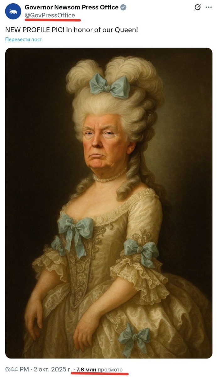 Губернатор Калифорнии постоянно троллит Трампа в соцсети Х 😁