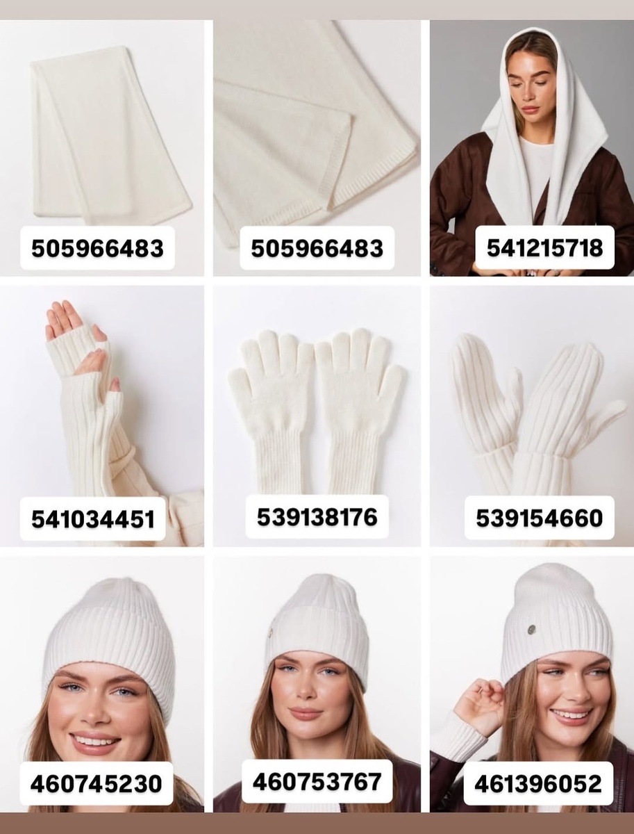 - Городская динамика. Молочная шапка 461396052, митенки 541034451 и шоколадный шарф 505966475 — удобный контраст для активных будней.
