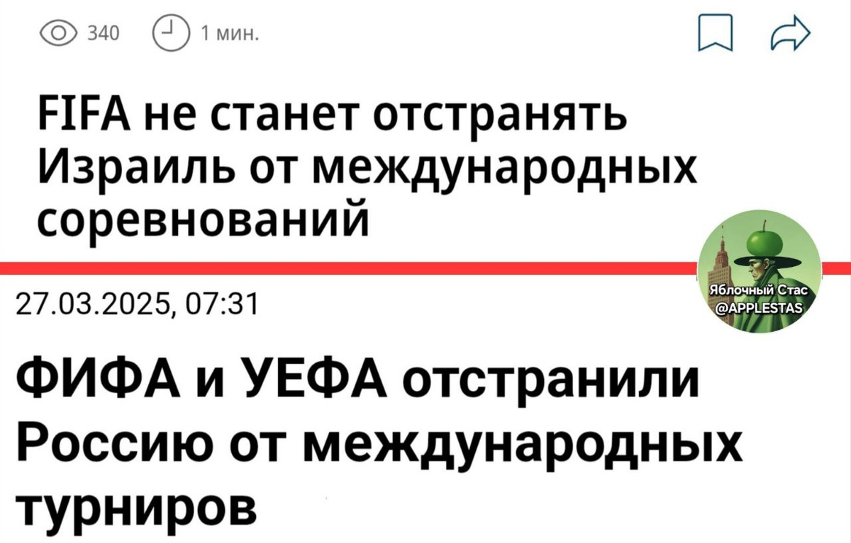 А что если ФИФА остранила нас за то, что мы недостаточно сильно наказываем хутор? Думайте.