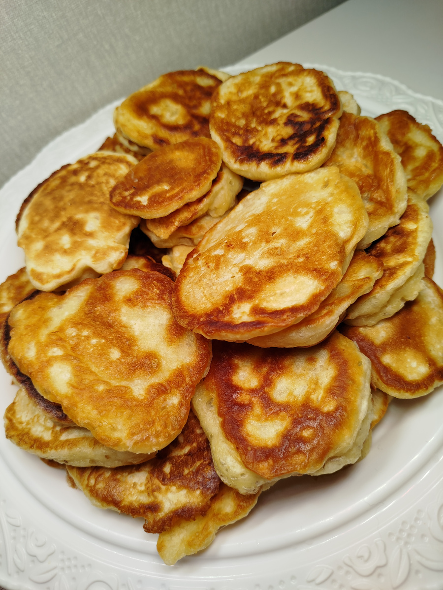 Рецепт Мука 500 г. Яйцо 1 шт. Молоко 250 мл. Вода 250 мл. Можно брать как у меня вода и молоко, а можно только воду или только молоко, на ваше усмотрение. Соль 0,5 ч. л. Сахар 1 ст. л. Дрожжи 1 столовая ложка, 12 грамм Жарятся примерно по 3 мин на медленном огне. Замесить тесто, после поднятия (+- 40 мин) тесто осадить и когда подойдёт 2 раз, только тогда жарить. Всем Приятного аппетита 🤗