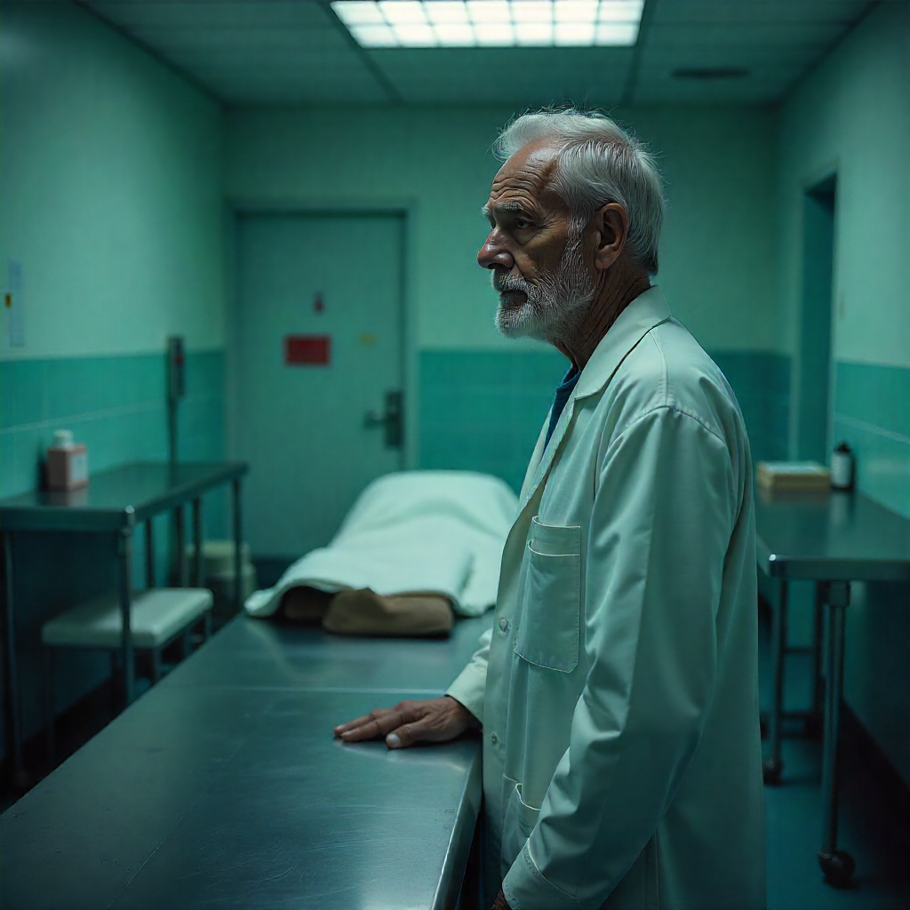 Аркадий Петрович считал себя не сторожем, а хранителем вечного молчания. Морг городской больницы №3 был его храмом, а шестьдесят холодильных камер — неприкасаемыми алтарями. Ночная смена с одиннадцати до семи была его литургией, расписанной по минутам: обход, бумаги, чай с сушками, чтение вслух классиков для тех, кто уже не мог слушать, и снова обход.