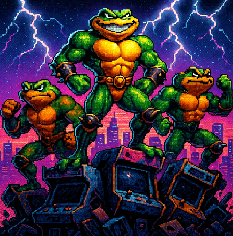 🎮 Когда в 1991 году на экранах NES появились три зеленоватые жабы с именами Рэш, Зитц и Пимпл, никто не ожидал, что они станут символом одной из самых безжалостных игр в истории. Battletoads задумывалась как ответ успеху Teenage Mutant Ninja Turtles — дерзкая попытка студии Rare поймать волну популярности антропоморфных героев. Но вместо «клона» игроки получили нечто иное: игру, где мультяшный абсурд сочетался с настоящей жестокостью, а каждый уровень превращался в экзамен на выносливость.