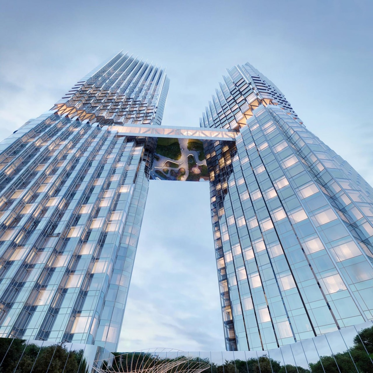 : Адрес: Москва, 3-й Сетуньский проезд, 10 Объект на карте небоскрёбов России: ссылка Высота в максимальной точке: 188,5 м Этажность: 34 (140 м) и 50 (188,5 м) + 2 подземных этажа Квартиры: 665 Мост: на уровне 22 эт. Паркинг подземный: 557 машино-мест Смотровые площадки: 22 эт. Количество очередей строительства: 1 Начало строительства: июнь 2024 г. Планируемая дата ввода в эксплуатацию: 2 кв. 2028 г. Архитектура: бюро «Kamen Architects» Застройщик: компания «Dominanta» Виртуальный тур: ссылка Веб-камера: ссылка Хэштег проекта: #hideout 😊 Небоскрёбы России