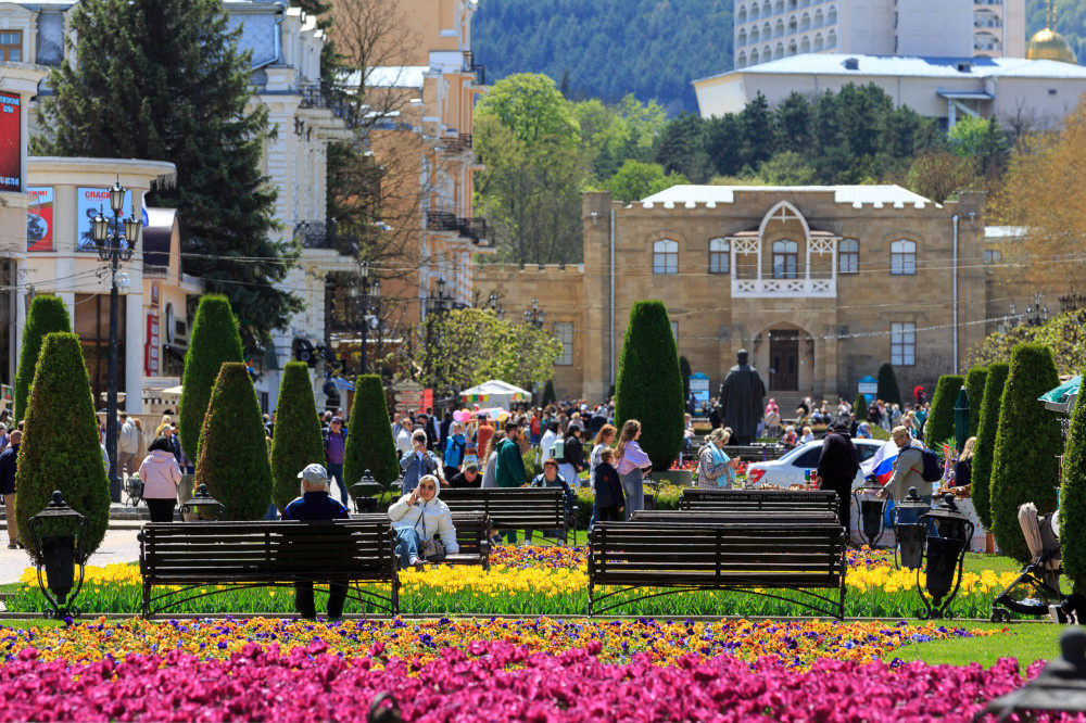 Есть в Кисловодске место, которое в мае превращается в настоящую цветочную симфонию. Это Курортный бульвар. И слово «утопает» здесь — не преувеличение, а единственно возможное описание.