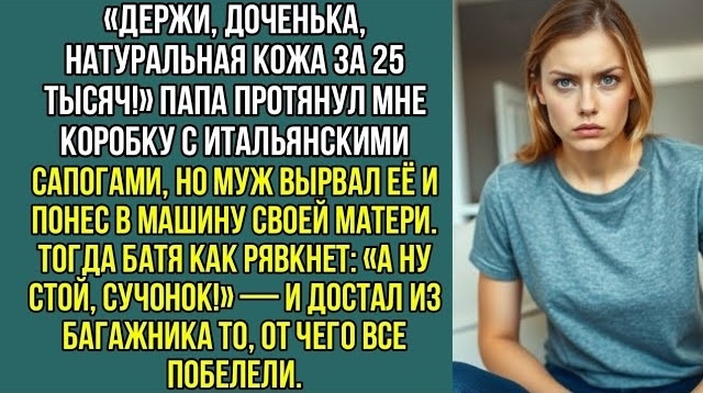 — Дочка, это тебе. Настоящие итальянские сапоги. Ты заслужила.