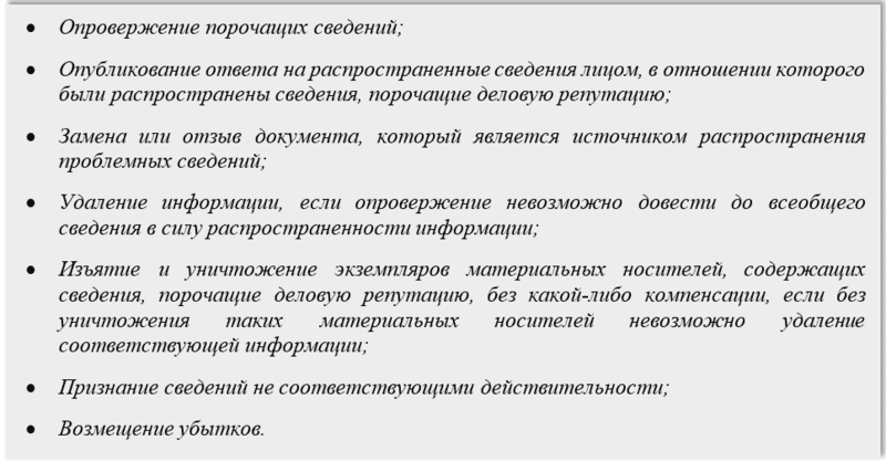 Специальные способы защиты деловой репутации перечислены в ст. 152 ГК РФ.