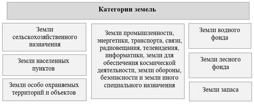 Все земли в Российской Федерации, согласно положениям Земельного кодекса РФ (ст. 7), делятся на категории, по их целевому назначению.