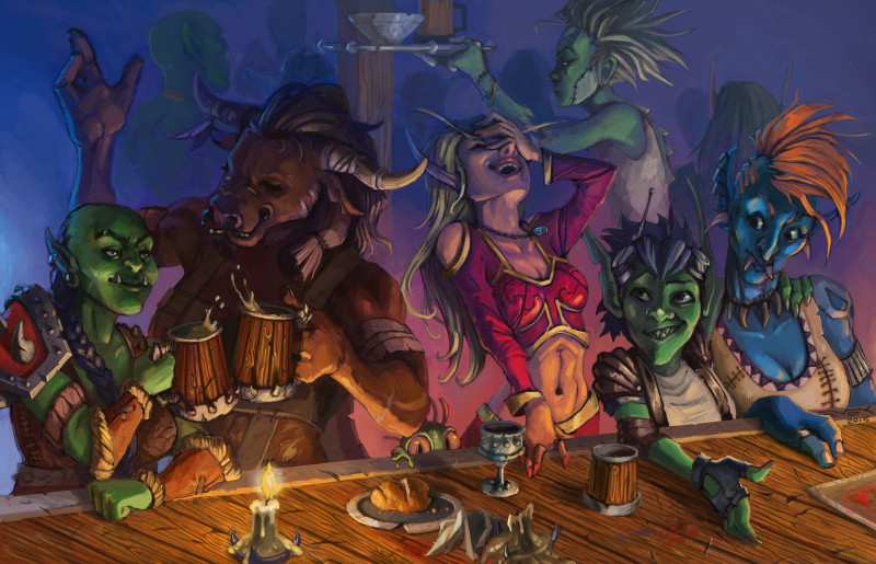 Один донельзя довольный гоблин, очевидно победитель, вприпрыжку пробежал между столиками и с разбегу вскочил прямо на стойку.