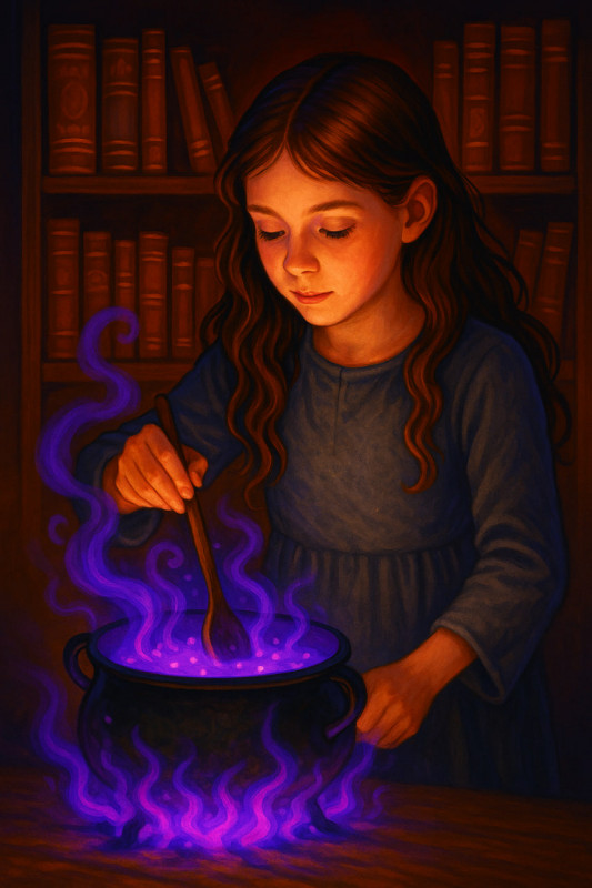 Я бросила в котёл последний листик брусники и отступила на пару шагов. Зелье кипело, под котлом горел фиолетовый огонёк… Магистра смотрела на меня и посмеивалась. Я стояла на месте… топталась, потирала руки… зелье постепенно темнело… Я спросила: