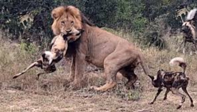 В дикой природе столкновения между львами и африканскими дикими собаками часто приводят к тому, что мелкие хищники отступают. Несмотря на факт, что дикие собаки смелые охотники, они никогда не вступают в схватки, в которых не смогут победить. Поэтому они избегают самцов львов, но нападают на отдельных львиц при условии достаточного количества "бойцов" в своей стае.