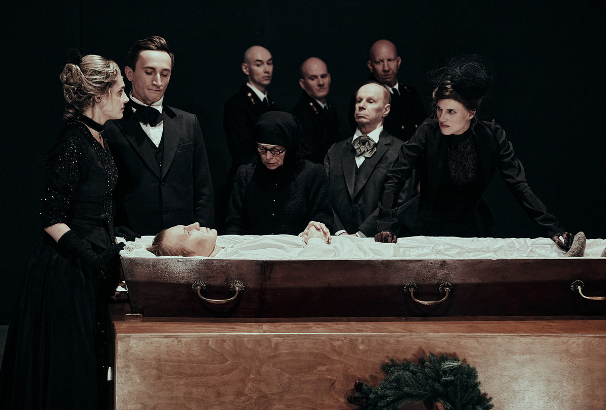 Как это просто, естественно и бесконечно грустно: смертельно больному кажется, что его никто не любит, не жалеет и не понимает. Успокоение же настает с появлением у гроба сына, гимназиста Володи: в повести он с плачем целует руку отца — в спектакле играет в мяч с Двойником, сидящим внутри гроба. Взаимодействие с ребенком исцеляет Ивана Ильича. Ему становится жаль близких. «Надо сделать, чтобы им не больно было», — решает он. И умирает. Как и классик, уравнивающий жизнь с гибелью емкой финальной фразой «Кончена смерть», спектакль Театра Наций оставляет в конце не протяжную тоску, но возвышенное чувство причастия. Последнего и самого важного для человека опыта на свете.