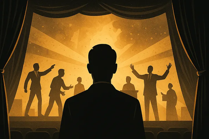 То, что разворачивается перед человечеством, — не ясная истина, а сценарная иллюзия: драма, сыгранная на сценах медиа, политики и социальных сетей. Меняются декорации — ток-шоу, трибуна, лента X (бывший Twitter), — но режиссура остаётся, и зрителю снова предлагают сопереживать заранее поставленной коллизии. Монтируется не только видео, монтируется контекст; подбираются не только кадры, но и паузы между ними.