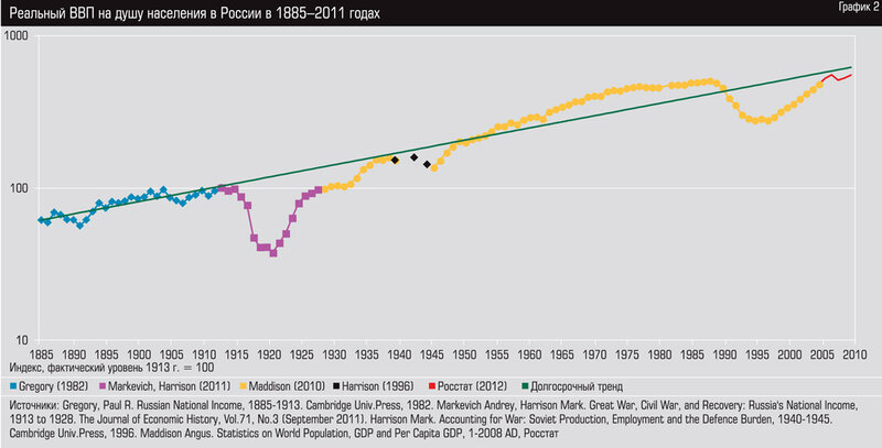 Три прелюбопытных графика —об "отсталой" Российской империи, советском "рывке" и путинском "застое".