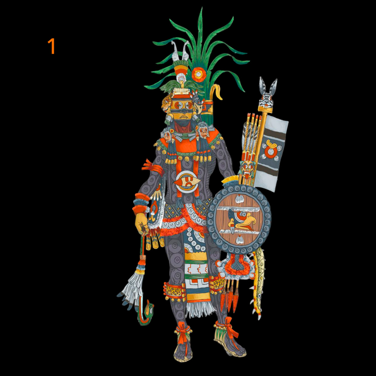 Вообще, у ацтеков и майя богов было больше, чем у нас телеканалов ныне, или лора в игре «Вархаммер». Всех их перечислять — с ума сойдешь. Но о некоторых мы можем дать представление. А помогут нам в этом картинки российского художника Евгения Шерстнева. — Тескатлипока — бог ночи, хаоса и судьбы, немного аналог Локи. Постоянно пакостит людям и даже собственного брата Кетцалькоатля довел до ручки. Согласно мифу, он хитро опоил его пулке (алкоголем из агавы), подсунул женщину (какой кошмар), и Кетцалькоатль так опозорился и начудил, что в стыде уплыл за моря (фото 1). — Тлалок — хозяин грома и дождя. Если добр — растет хрущевский кукурузный рай, если зол — заливает все так, что хоть ковчег строй. Ему приносили детей в жертву, и если они плакали при обряде — это считалось самым добрым знаком для урожая (фото 2). — Кетцалькоатль — бог знаний, ремесел и ветра. Его считали покровителем письма, календаря и культуры. В мифах он то помогал людям, то попадал в ловушки Тескатлипок (фото 3). — Мишко
