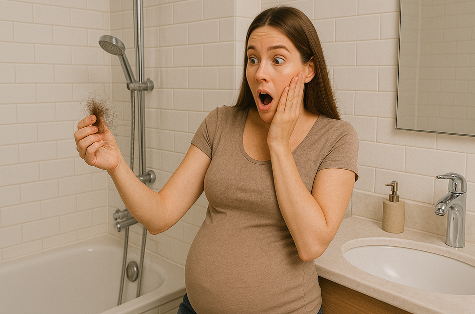 Во время беременности уровень эстрогенов высок, волосы практически не выпадают. Но после родов гормональный фон резко меняется, и многие фолликулы переходят в фазу покоя.