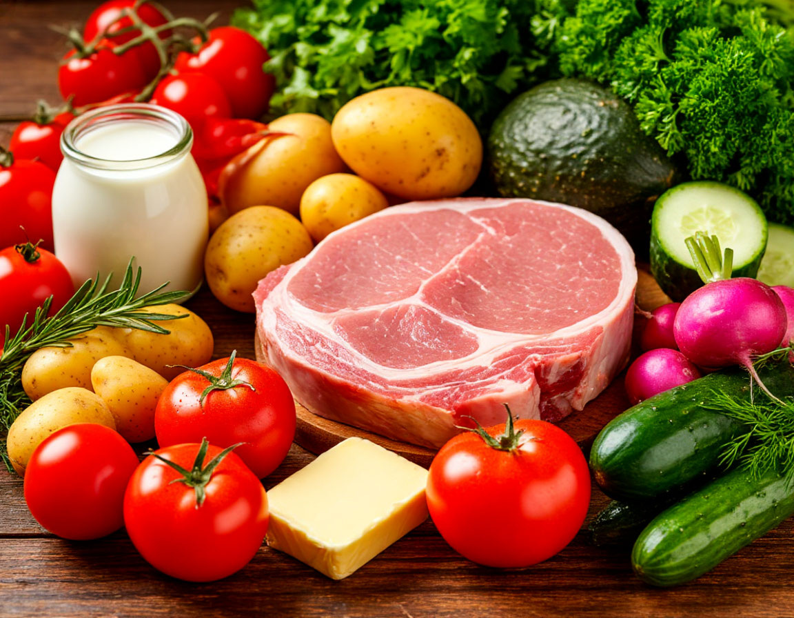 Взбитое пышное пюре с молоком и маслом уютно устроилось в кастрюльке, радовал взгляд салат, уложенный в стеклянную миску, а на тарелку легли идеально приготовленные куски мяса.