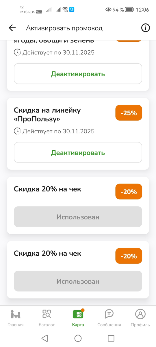 Есть такая сеть на Северо-Западе России, если кто не в курсе. Ну и вот, давеча(ну в сентябре, да и сейчас еще вроде, я то уже прошел) в этой сети была обычная для всяких этих сетей мулька с морковками, розыгрышами и тд, только тут надо было играть "3 в ряд" и за прохождение давали всякие там промокоды. На условную чистку смокингов, разумеется, тоже. Но не только. Опять же, ребенок с его ограничениями на компуктеры и игрушки погонять пару партий только рад. А в итоге примерно так получается: Плохо что-ли, 20 то процентов на чек? Я считаю - очень хорошо. Как и 15, как и 10. Но 20, конечно, лучше. И да, надо почитать условия, оно только на белые ценники. Без скидок. Не знаю как действует со кидками, потому как я под эти купоны прошелся только по белым. Но и белые - молоко, например, из 60 за литр (ну лано, не литр, килограмм. Надоели, честное слово), превращается в 50 за литр. При закупе в 10 коробок, да-да, не хватит не то что на неделю, а и на дней 5, что и хорошо при сроке годности в
