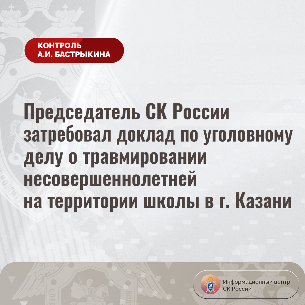 Председатель СК России затребовал доклад по уголовному делу о травмировании несовершеннолетней на территории школы в г. Казани