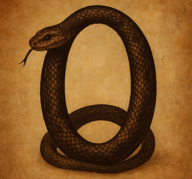 Ноль — это не просто цифра. Это пауза между вдохом и выдохом, момент, когда ещё ничего не началось, но уже что-то существует. Его нельзя потрогать, измерить или понять умом. Ноль — это точка, в которой сходятся прошлое и будущее, исток и конец. Он одновременно и ничто, и всё. Если другие числа похожи на людей со своими стремлениями, амбициями и тревогами, ноль — сама природа: спокойный, терпеливый наблюдатель, не подвластный времени. Он не ищет признания и не спешит. Он просто есть, как дыхание мира, как тихая пауза между волнами, как мгновение тишины между шумом. Когда человек сталкивается с «нулём» в своей жизни, он ощущает пустоту, потерю привычного смысла, растворение мира. Но это не конец. Это точка покоя перед новым движением, момент, когда старое стирается, а новое ещё не проявилось. Ноль учит принимать невозможность полного контроля и доверять естественным циклам. В этой пустоте скрыт потенциал, готовый вскоре раскрыться. Змея — живое воплощение нуля. Её тело изгибается в идеа