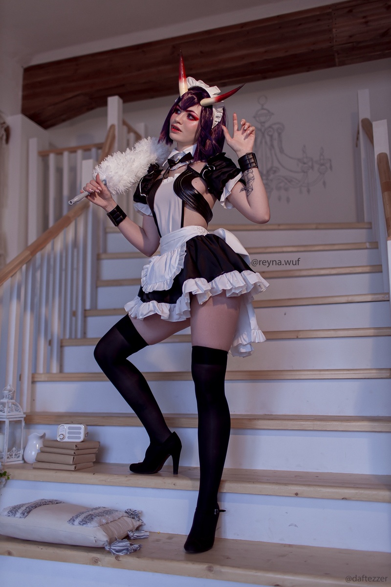 Reyna Wuf в роли Шутен Доджи в образе горничной – это смелое и невероятно эффектное перевоплощение. Сочетание милой униформы и демонической сущности персонажа создает завораживающий контраст, который никого не оставит равнодушным.