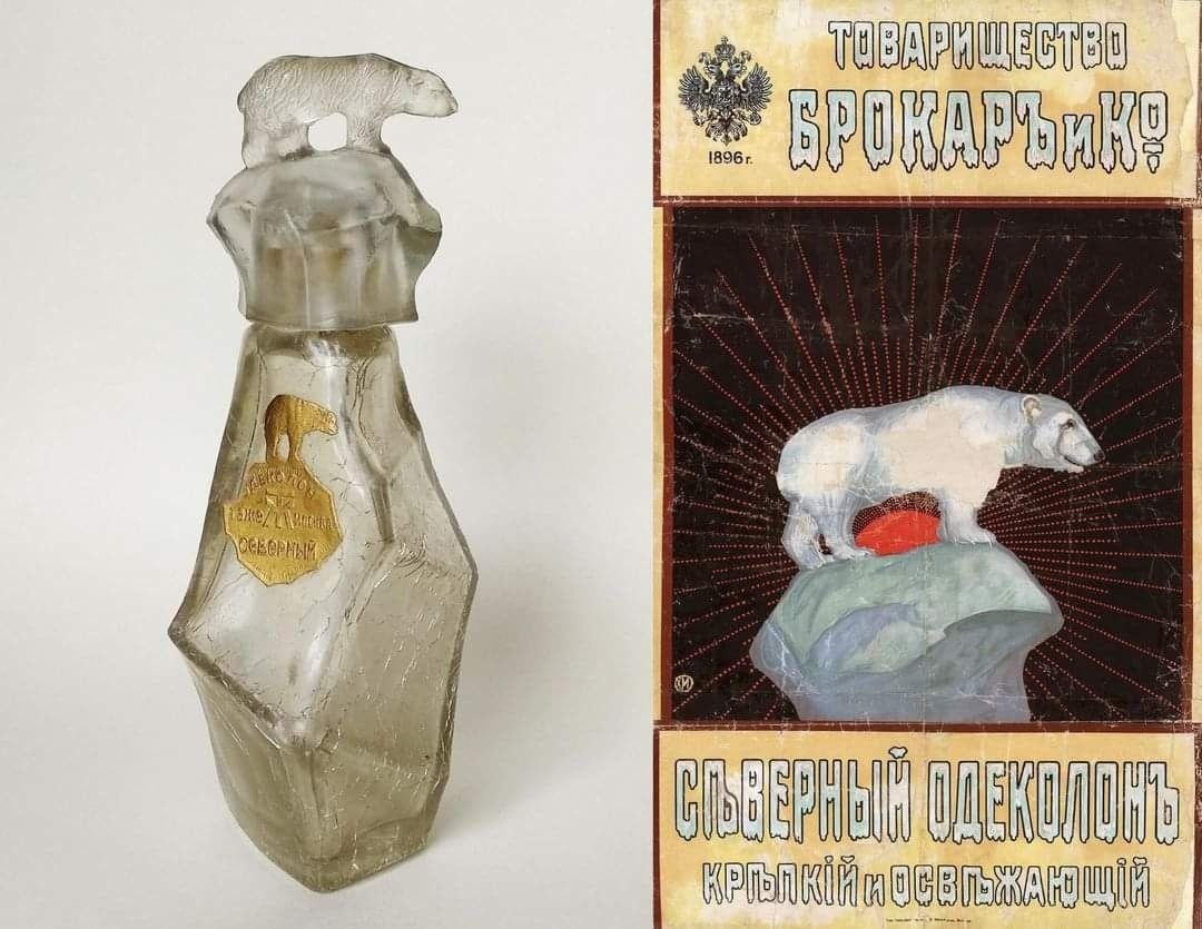 Малевич не только квадраты рисовал. В 1907 году Казимир Малевич переехал из Курска в Москву. Средств не было никаких, голодать иногда приходилось сутками. Единственным спасением были заказы. В том числе, от московских парфюмеров. В воспоминаниях ближайшего друга Малевича, художника Ивана Клюна, есть такие строки: «Наступила осень, у Малевича не было пальто, а тут ему посулили заказную работу; он пришел ко мне и просил дать ему пальто, чтобы сходить эту работу получить, — было это в воскресенье, и я сидел дома. И после не раз он еще приходил ко мне за пальто, чтобы получить заказ. В то трудное для Малевича время его поддержал своими заказами Брокар (парфюмерное дело). Известные духи: флакон в виде ледяной скалы и на ней белый медведь, а также этикетка работы Малевича». Мы уже никогда не узнаем, почему Брокар заказал эскиз флакона нищему художнику в пальто с чужого плеча, до тех пор делавшему для него только этикетки. 👇