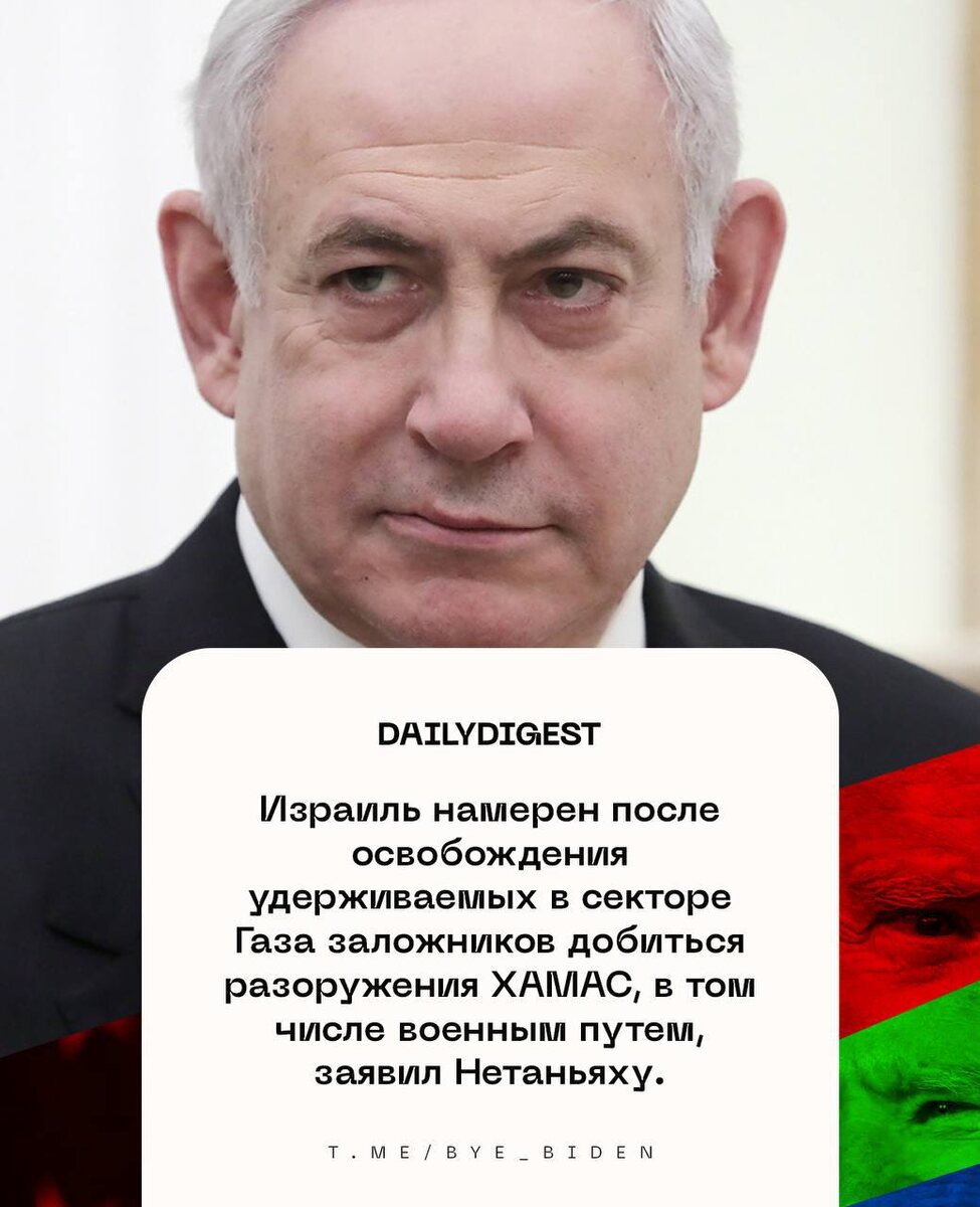☑️ Главные новости на утро 5 октября: 🔹Израиль намерен после освобождения удерживаемых в секторе Газа заложников добиться разоружения ХАМАС, в том числе военным путем — Нетаньяху. 🔹МВД Грузии сообщило о задержании пяти оппозиционеров за призывы к госперевороту и свержению власти. 🔹Режим перемирия в Газе при согласии ХАМАС введут немедленно — Трамп. 🔹Грета Тунберг заявила, что израильские власти содержат ее в камере с клопами и дают ей недостаточное количество воды и еды, — The Guardian. 🔹НАТО стоит отказаться от идеи бесполетной зоны над Украиной — The American Conservative. 🔹Стоимость биткойна обновила исторический максимум, превысив $124,48 тыс., свидетельствуют данные площадки Binance. UPD: Премьер Грузии Кобахидзе заявил, что партия Саакашвили пыталась устроить «Майдан» в стране. 👍 БайБайден. Подписаться