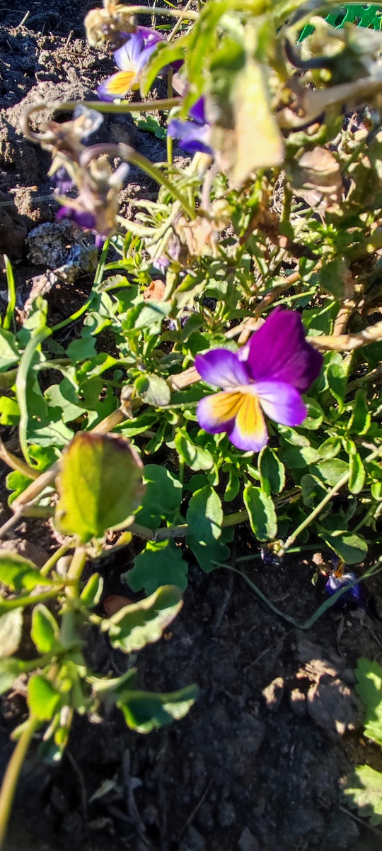 На улице все холоднее. Но часть цветов до сих пор радует. Анютины глазки, к примеру, упорно цветут. Хотя даже сорняки замерзли. Этот цветок, кстати, пересадила из владений Чипса. Сам взошел. Дикий?