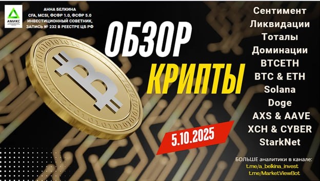 #video Приглашаю на просмотр видео! Тема – Обзор крипто рынка 05/10/2025. В видео рассмотрены: Сентимент Ликвидации Тоталы Стейблкоины Доминация BTC & ETH; #BTC_D #ETH_D #BTCETH #BTC #ETH #DOGE #XCH #CYBER #SOL #AXS #AAVE #STRK YouTube | Rutube | VK Видео | Дзен Не является ИИР 💪 БОЛЬШЕ разметок в Закрытом канале: Бот Закрытого Канала (подписаться из-за границы, пишите личным сообщением)