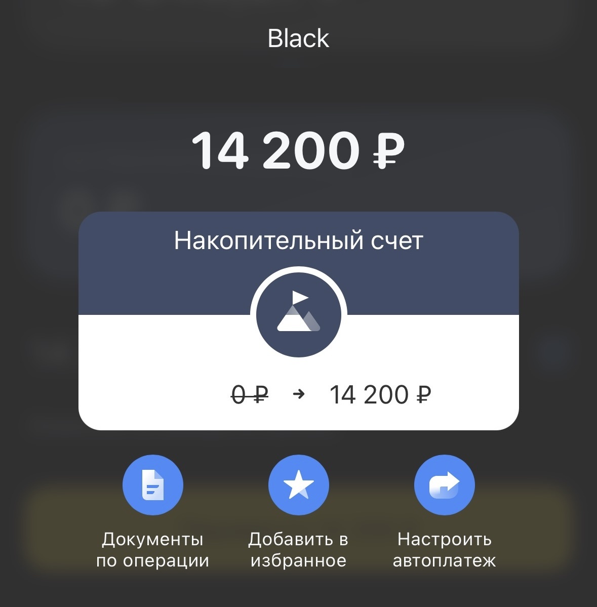 Всем привет, друзья! 👋 Я веду челлендж «200₽ каждый день вместо сигарет» и перевожу эти деньги на брокерский счет в Сбере. И знаете, к какому выводу я пришел? Это неудобно! Каждый день заходить в приложение и ручками переводить по две соточки — напрягает. Иногда я даже забывал это сделать и приходилось на следующий день переводить сразу за два дня сразу (челлендж про ежедневное пополнение, на минуточку). А еще, нельзя поставить авто-пополнение брокерского счета — вдвойне напрягает! В общем, я принял решение — открыть накопительный счет в Т-банке. Почему именно в нем? Все просто: я им и так активно пользуюсь, и меня в нем все устраивает: Удобный и понятный интерфейс — все интуитивно ясно. Приложение не тормозит — быстрый отклик. Пользуюсь их картой ежедневно — остаток с зарплаты перевожу сюда. Деньги не съедает инфляция — лежат под процентом. И главное — есть авто-пополнение! Вы скажите: «В Сбере тоже есть автопополнение!» И будете правы. Но я уже привык к Т-банку, все траты веду с
