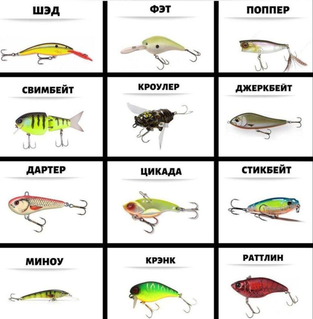 По форме тела и строению воблеры классифицируются прежде всего по наличию лопасти. Наилучшее представление о классификации воблеров по форме дает представленная картинка. Так же используются условные обозначения для обозначения горизонта работы воблера (у разных производителей одним и тем де обозначениям могут соответствовать разные диапазоны рабочих глубин). • SSR (Super Shallow Runner) – воблер, не углубляющийся более чем на 30 см; • SR (Shallow Runner) – воблер, работающий в приповерхностном слое, не глубже одного метра; • MR (Medium Runner) или MDR (Medium Deep Runner) – воблер среднего углубления; • DD или DR (Deep Diver/Deep Runner) – воблер, работающий на глубоких горизонтах водоема; • SDR (Super Deep Runner) и XDD (Extra Deep Diver) – сверхглубоководные воблеры, быстро тонущи