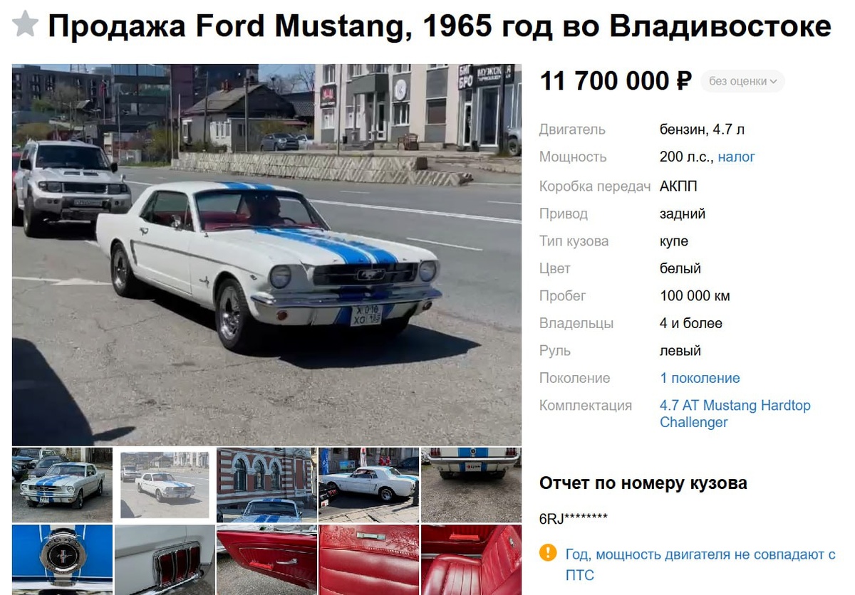 Отреставрированный Ford Mustang 1965 года продают во Владивостоке за 11,7 миллиона рублей
