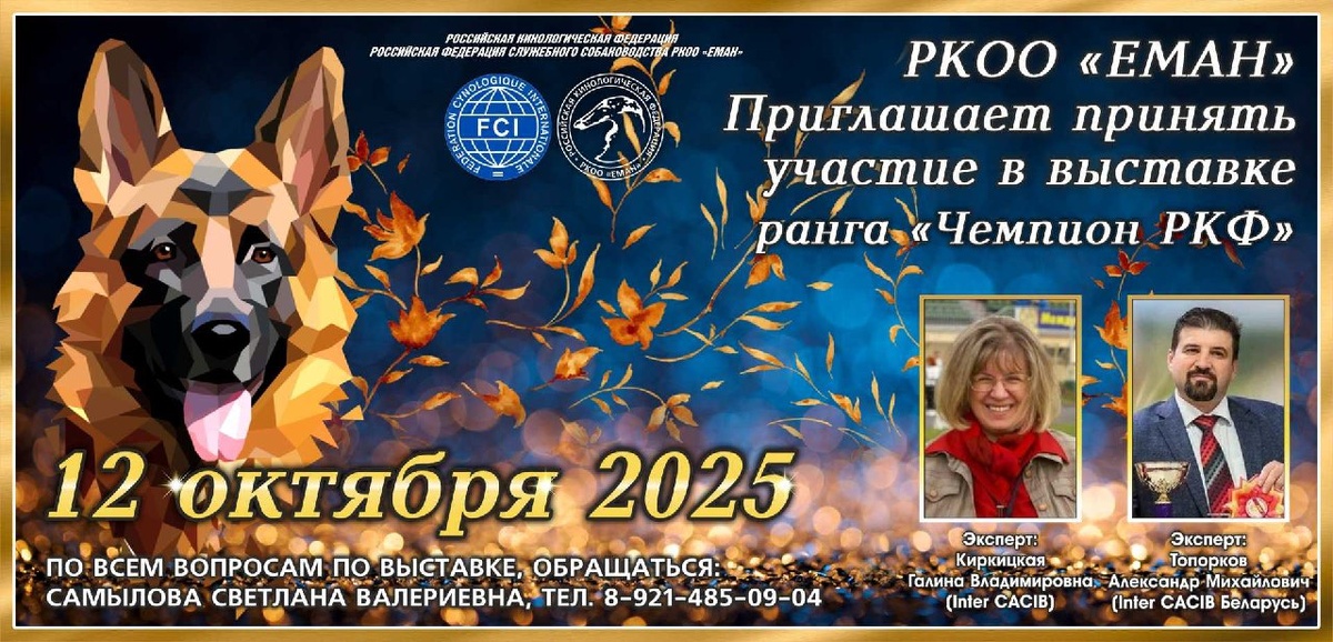 ⏰ 12 окт (7д) 🏛 #Архангельск #Россия #Выставка 🐶 Выставка собак: КОО Еман 🏆 Кинологическая общественная организация "Еман" Контакты организаторов здесь: 🌐 https://www.petsman.ru/vystavki-sobak.php?mesto=11-arhangelsk Выставка ЧЕМПИОН РКФ!!! 🏆🏆🏆 🧑 👨 Эксперты: 🔹 Киркицкая Галина Владимировна (г. Москва) 🔹 Топорков Александр Михайлович (Беларусь)