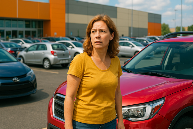 Въехав на парковку торгового центра, она сразу заметила красный джип с характерной царапиной на заднем бампере.