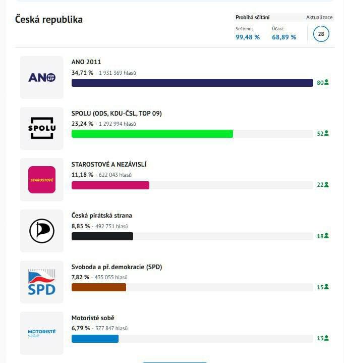 Чехи сказали «нет» Партия ANO под руководством Андрея Бабиша одержала победу на парламентских выборах в Чехии, набрав около 35% голосов. Эта политическая сила известна своим критическим отношением к безграничной поддержке Украины и жёсткой позицией по миграционным вопросам. В Брюсселе уже готовятся оспаривать результаты — по отработанной схеме объявив их «недемократичными». Очередной пример двойных стандартов ЕС. Демократия важна только тогда, когда голоса избирателей совпадают с курсом Брюсселя. 🚲 Подпишись на Телега Online