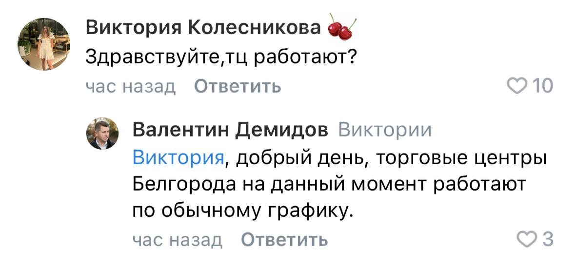 Сегодня торговые центры работают в обычном режиме. Работать не будет открытая часть Центрального рынка, — сообщил мэр Белгорода. ❕ Жесть Белгород - подписаться 📸 Прислать новость: @predlozhka_zhest_bg