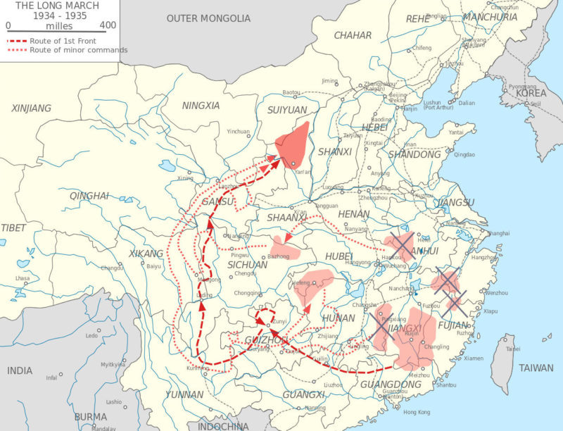 К 1934 году коммунисты оказались в критическом положении. После серии поражений от войск Чан Кайши их основные силы, сосредоточенные в южных районах Китая, оказались окружены. Чтобы избежать полного уничтожения, руководство КПК приняло решение о стратегическом отступлении. Так начался Великий поход — драматический переход Красной армии через всю территорию Китая к северным районам, где коммунисты могли рассчитывать на более благоприятные условия для продолжения борьбы.