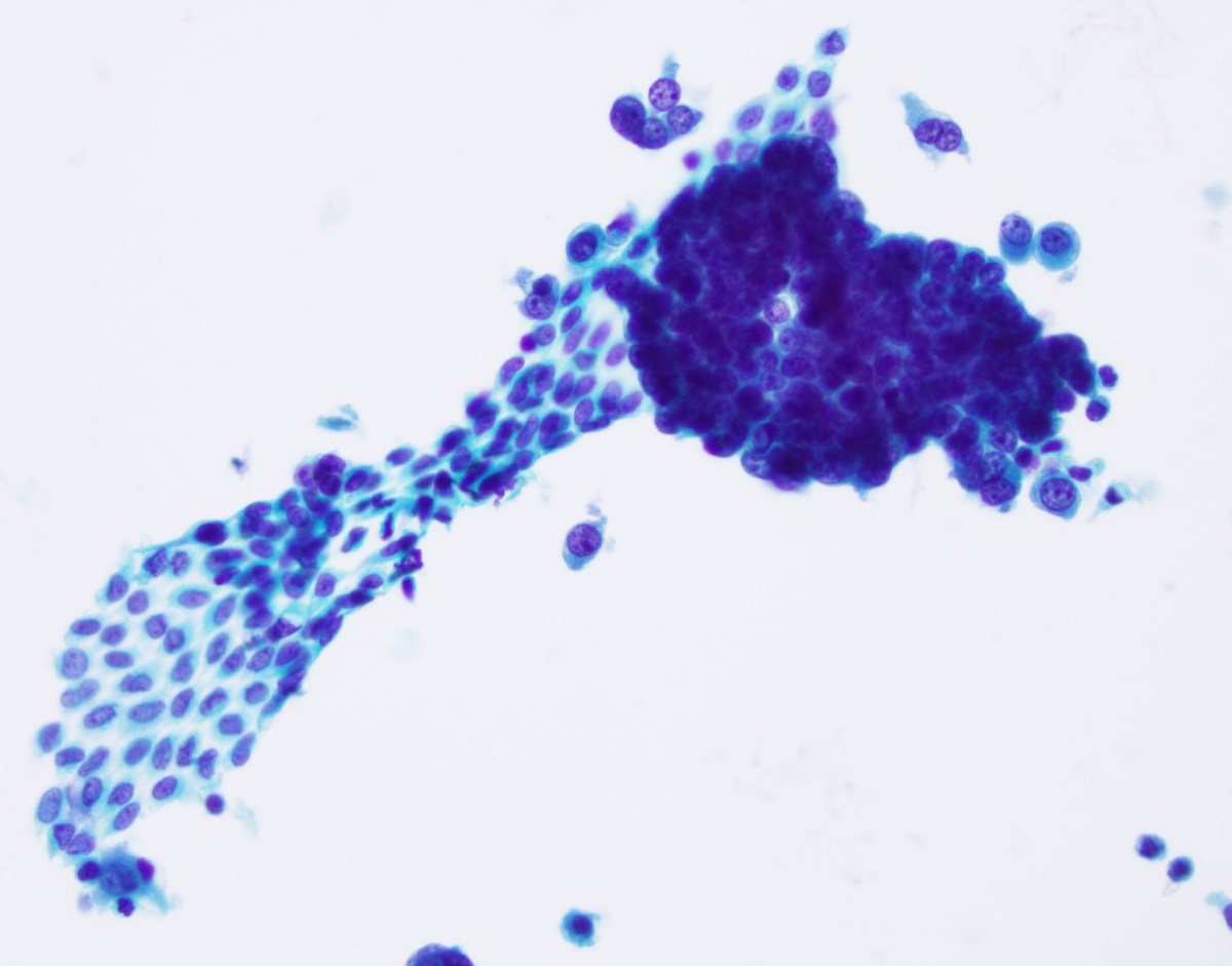 Добро и зло ☯️ Перитонеальный смыв Пласт доброкачественных мезотелиальных клеток рядом с клетками метастазирующей высокодифференцированной серозной карциномы #цитология #перитонеальныйсмыв