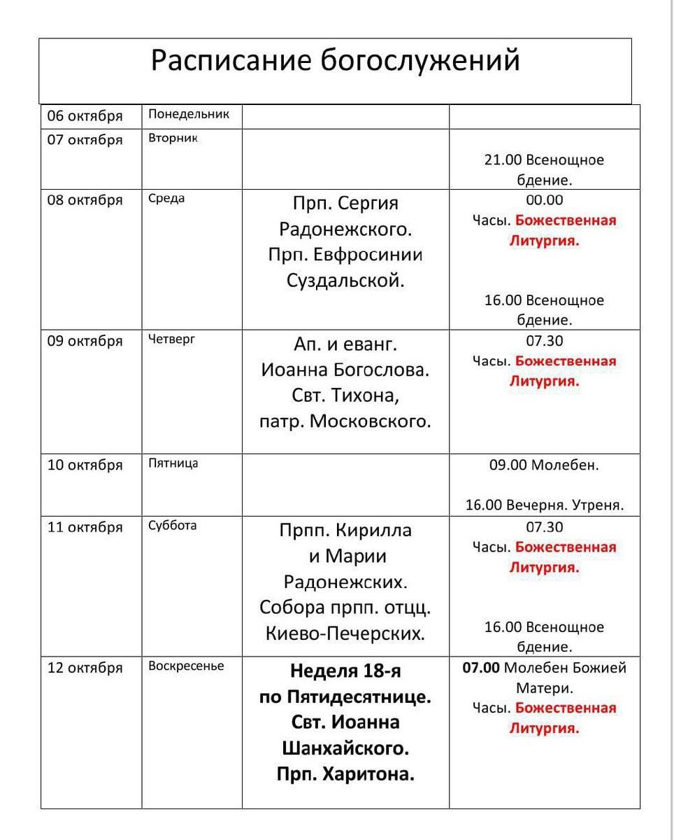 Наше расписание. Может кому пригодится.