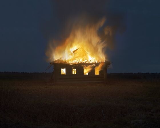 Обведя в последний раз глазами избу и её обитателей он с тяжелым сердцем вышел во двор, а оттуда, забрав свои вещи из амбара шагнул в огород, из которого хорошо было видно часть двора и дом. Вскоре возле него появились деревенские мужики, кольцом окружая избу и обкладывая её соломой, что принесли с собой. Молча, и от того Семену было особенно жутко, они поднесли свои факелы к ней.
