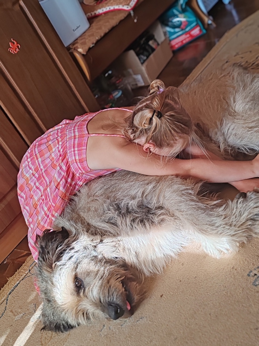 Доброе утро и приветик из дома от Лютика) Хочу поделиться своим счастьем. Знакомьтесь, Лютик) Товарища абсолютно случайно увидела на авито. Поехала знакомиться в кошачий (!!!) приют в Санкт-Петербурге. И хотя я из Москвы, не секунды не сомневалась. Но приехав, обомлела... Мужичок оказался гораздо более крупным, чем на фото. Погуляли, побыли вместе и я уехала обратно... И целый месяц думала, а как же я с такой собакой большой буду жить. При условии 2 котов, морской свинки, двух ящериц и 3 детей 😂😂😂Но так как он не выходил у меня из головы вообще, решение было принято. Мальчишка очень близкий метис ирландского волкодава. Но если волкодавы довольно элегантны, то Лютик ещё и широкий, и мускулистый😅 Так что, кто там мама или папа одному Богу известно))) Про него знаю только, что его хозяин умер и пес попал в муниципальный приют Вышнего Волочка. Пробыл там 3-4 месяца, его заметили волонтеры и забрали в приют, кошачий😅 в Питере. У меня живёт полгода, привыкаем друг к другу) Некоторые по