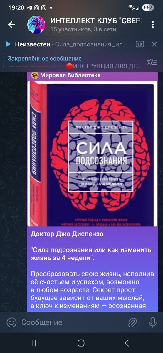 Сегодня я ведущая психологического клуба по теме: Сила подсознания.