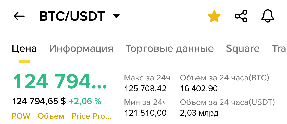 На платформе Binance Биткойн (BTC) не только преодолел психологически важную отметку в 125 000 USDT, но и установил новый исторический рекорд, достигнув пика на уровне 125 877,30 USDT. Этот импульс может быть связан с растущим принятием Bitcoin на институциональном уровне и ожиданиями одобрения новых ETF, что создает мощный восходящий тренд.