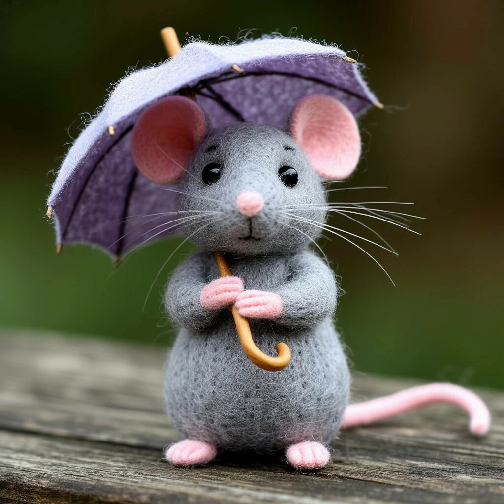 - Ой какой мышоночек. - Тихо произнесла она, остановив свой взгляд на маленьком забавном валеном мышонке светло-серого цвета, с глазками - бусинками, который держал в лапках зонтик.