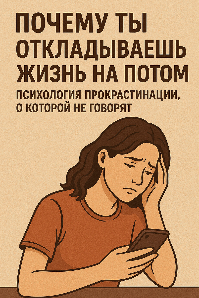 Психология прокрастинации, о которой не говорят Ты когда-нибудь ловил себя на том, что сидишь, смотришь в телефон и знаешь — надо делать, но не можешь заставить себя начать? Не потому что лень. А потому что внутри всё будто застывает. ⸻ 💭 Не лень, а защита Прокрастинация — это не отсутствие силы воли. Это психологическая защита. Когда ты откладываешь, ты не “тупишь” — ты избегаешь боли. Боли от страха не справиться. Боли от возможной ошибки. Боли от того, что, если ты начнёшь, придётся признать: результат может быть неидеальным. ⸻ ⚙️ Как мозг нас обманывает Мозг всегда выбирает безопасность. Ему выгоднее пролистать ленту или сделать вид, что ты “ещё не готов”, чем столкнуться с тревогой. Вот почему ты можешь сидеть часами, зная, что тикает срок — и ничего не делать. Это не слабость, это биология. ⸻ 🧩 Что скрывается под “я не могу начать” Иногда за этим стоит: • страх провала — “а вдруг не получится?” • страх успеха — “а вдруг получится, и придётся держать планку?” • у