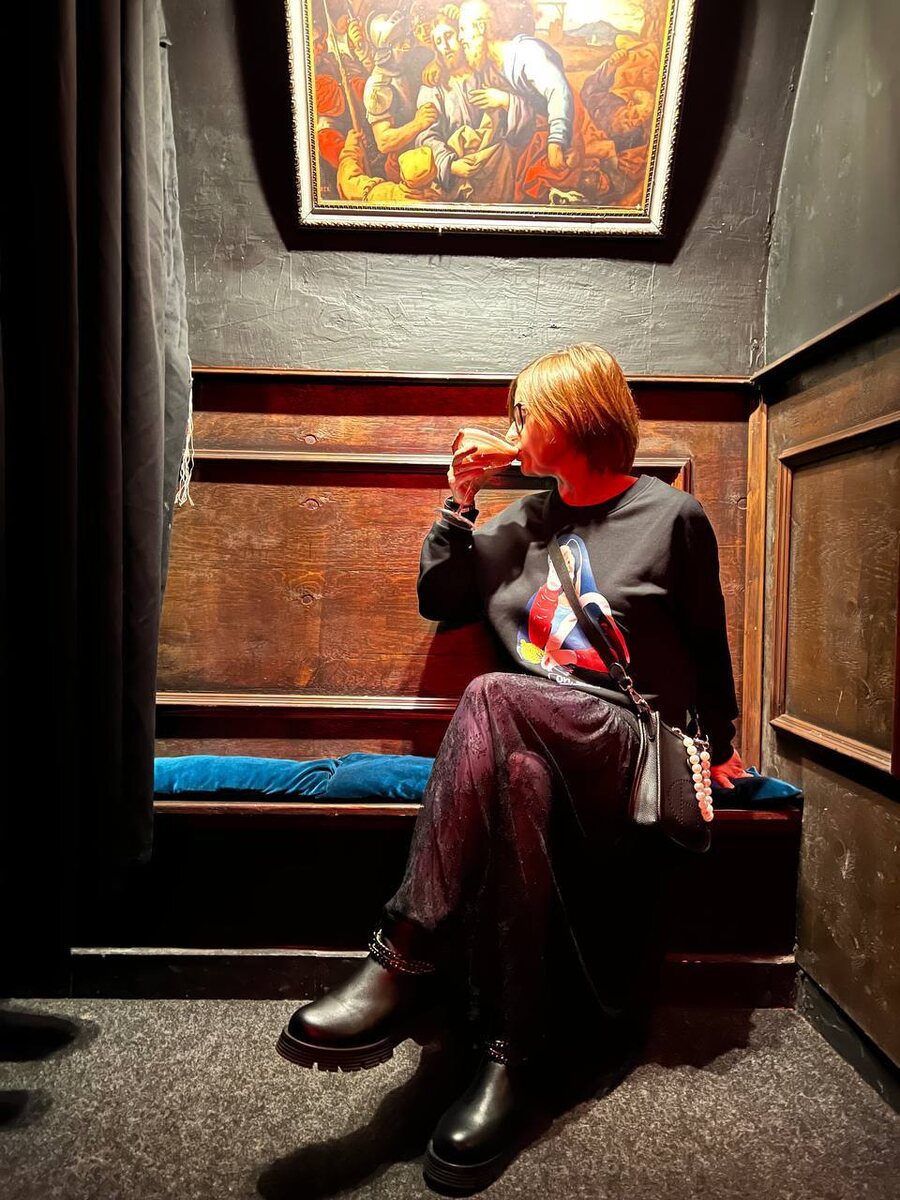 Немного про вчерашний вечер или пост о вреде шашек ♟️ Во-первых, как вам мой гранж-образ с юбкой из большого театра и свитшотом ? Фиолетовые колготки и тракторная подошва - мне кажется 🔥 - как вам? Во-вторых, со спектакля иммерсивного театра мы ушли примерно на 20 минуте - но хоть атмосферных фоточек сделали. В-третьих, я считаю во всем виноваты шашки. Ну кто дает посетителям шашки и такие скользкие бокалы 🥂 - обратите внимание на фото на мое лицо - я уже осознала, что случится через секунду 🤪 В общем вечер получился довольно странный, но юбку я выгуляла ♥️