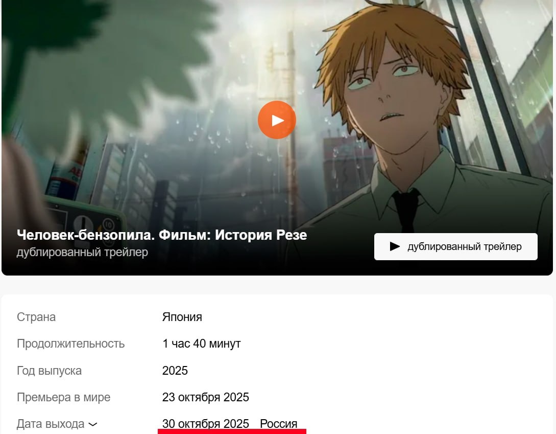 Привет, друзья! Для всех поклонников аниме отличные новости: фильм «Человек-бензопила: история Резе» выйдет в российских кинотеатрах 30 октября. Это произойдёт спустя неделю после мирового релиза, что говорит о высоком интересе к проекту со стороны зрителей по всему миру. «Человек-бензопила» стал одним из самых обсуждаемых аниме последних лет, благодаря своему уникальному сюжету и запоминающимся персонажам. Теперь поклонники смогут увидеть историю Резе на большом экране и погрузиться в атмосферу этого захватывающего мира. Выход фильма в России — это не только возможность для зрителей насладиться качественным анимационным кино, но и подтверждение того, что аниме продолжает завоёвывать популярность в нашей стране. #Будете ли вы смотреть этот фильм в кинотеатре или предпочтёте дождаться цифрового релиза? Подписывайтесь на канал «The Collective», чтобы не пропустить самые интересные новости из мира кино и аниме! Что вы думаете по этому поводу? Пишите в комментариях!