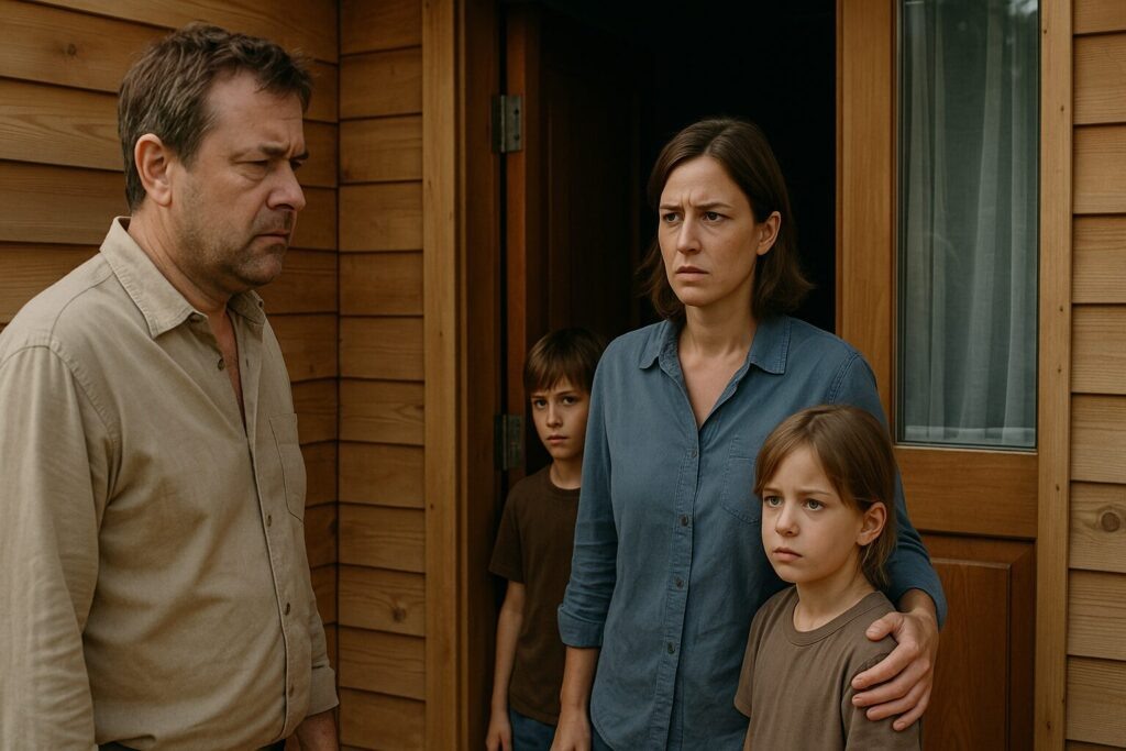 Он подошел и вошел в открытую калитку. Звонка не было. Подошел к двери — там тоже никаких кнопок не имелось, так что постучал в дверь с крайне недовольным выражением лица.